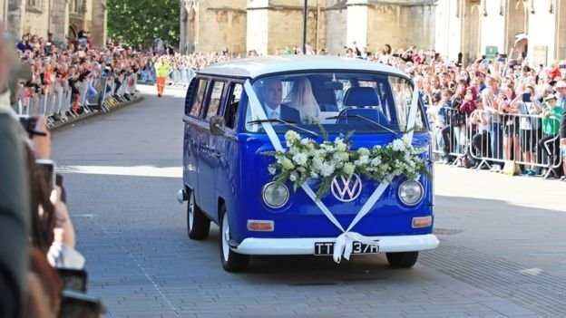 Ellie Goulding'in gelin arabası için mavi Volkswagen bir kamp aracıydı.
