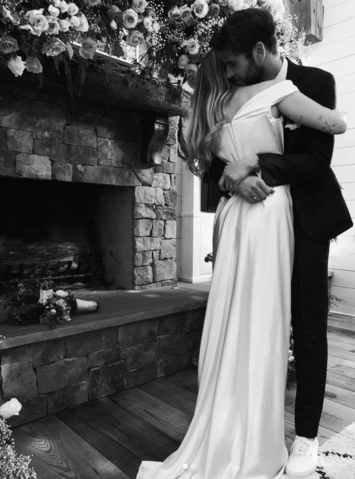 Vivienne Westwood imzası taşıyan Cyrus, Hemsworth ile 23 Aralık'ta çekilen siyah beyaz düğün fotoğraflarını Instagram sayfasından paylaştı.