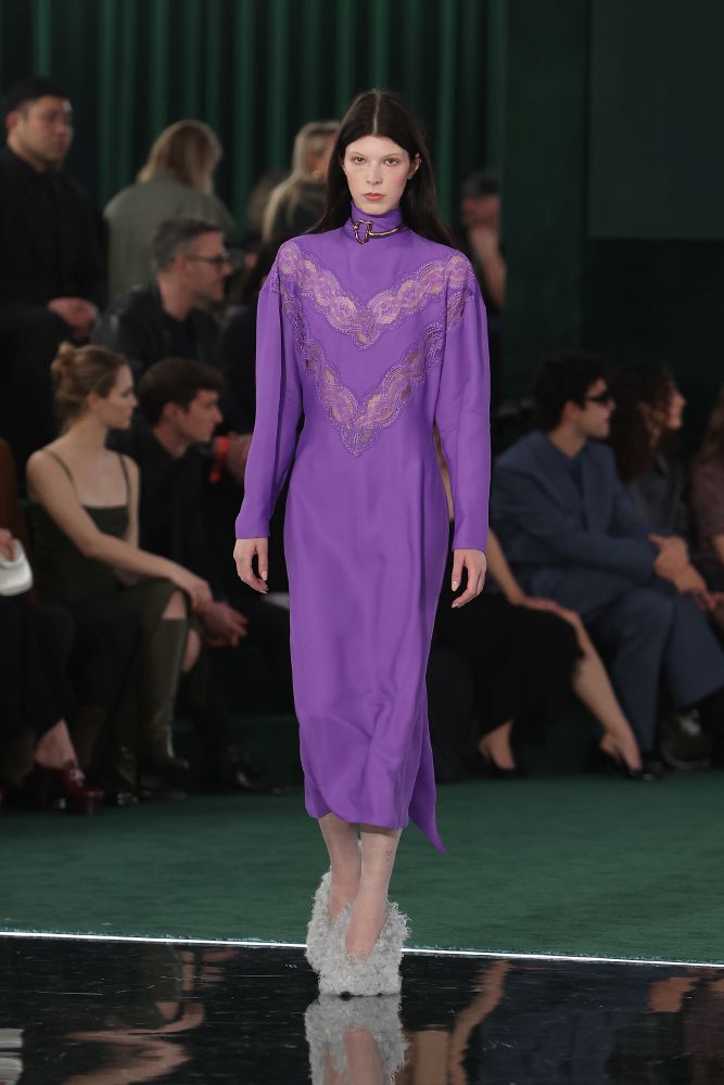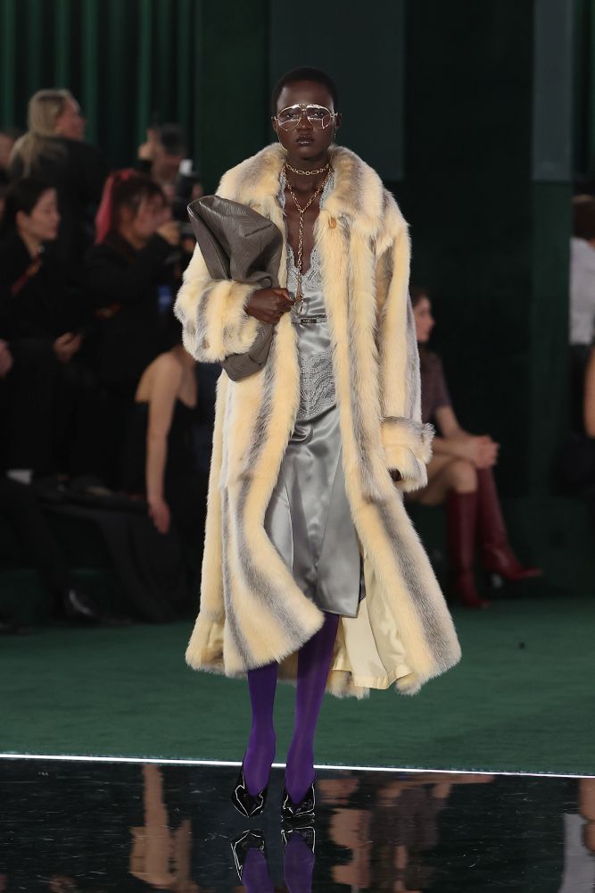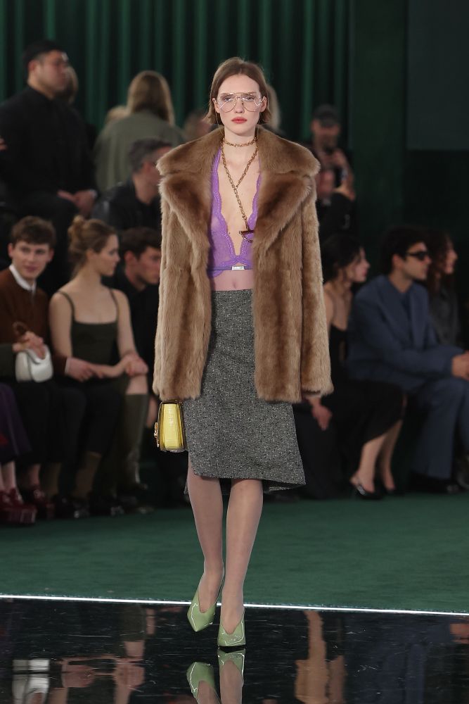 Gucci’nin Sonbahar/Kış 2025-26 koleksiyonu, Sabato De Sarno'nun aniden ayrılması sebebiyle, modaevinin iç tasarım ekibi tarafından hazırlandı. İç tasarım ekibi daha önce Alessandro Michele’in ayrılığının ardından da yaklaşık dört sezon boyunca şovlara imza atmıştı. Ekip bu sezonda unisex tasarımlara odaklanarak kürk ve dantelden, beyzbol şapkaları ve 80’lerin ışıltılı logo baskılı tulumlarına dek hem feminen hem de maskülen değerleri kucaklamayı başardı.
