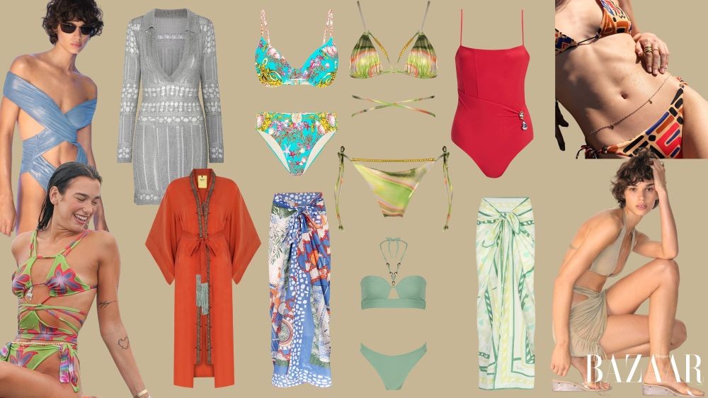 Soldan sağa alt: Dua Lipa; Kimono – Jaquette; Pareo – LisaLina; Bikini – Maliluha; Pareo – LisaLina; Bikini takım – Mango.