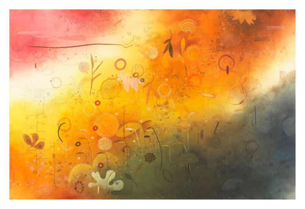 Whitehorse’un pastel tonlardaki soyut kompozisyonları, fuarın gürültüsü içinde bir sessizlik alanı yaratıyor. Navajo kültüründen beslenen bu işler, doğa ve ruh arasında görsel bir dua gibi. Özellikle büyük boyutlu “Blue Field” işi, minimalist bir lirik etki yaratıyor — fuarın ticari enerjisi içinde neredeyse meditatif bir durak.