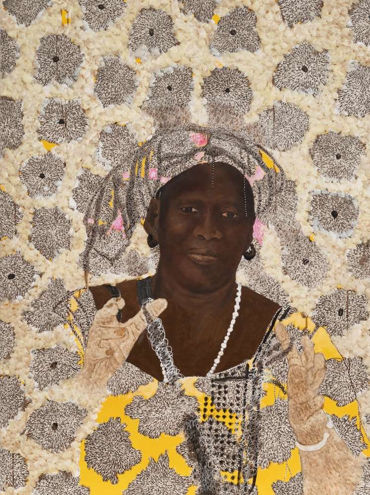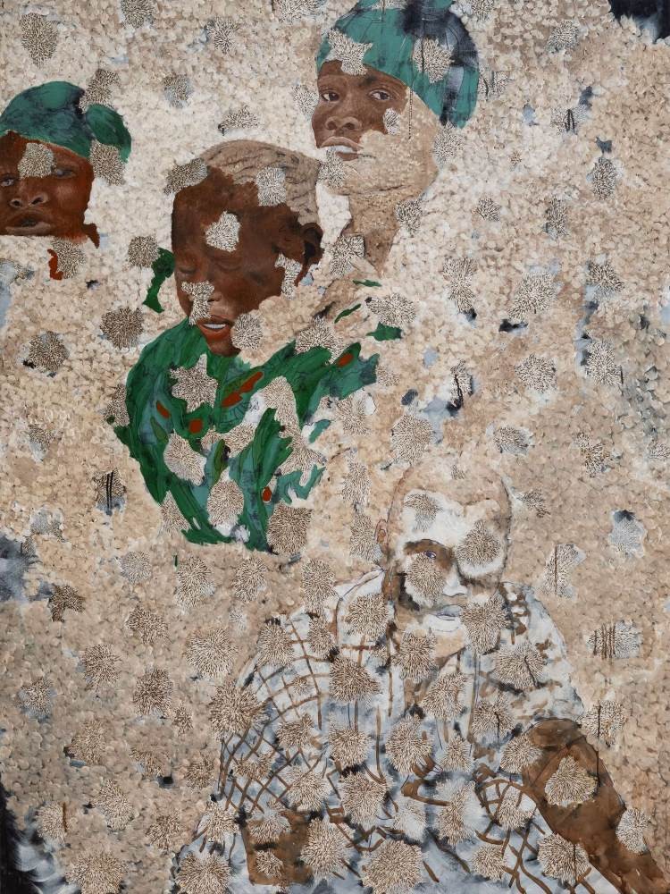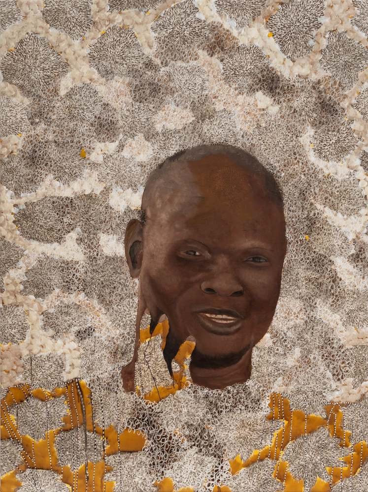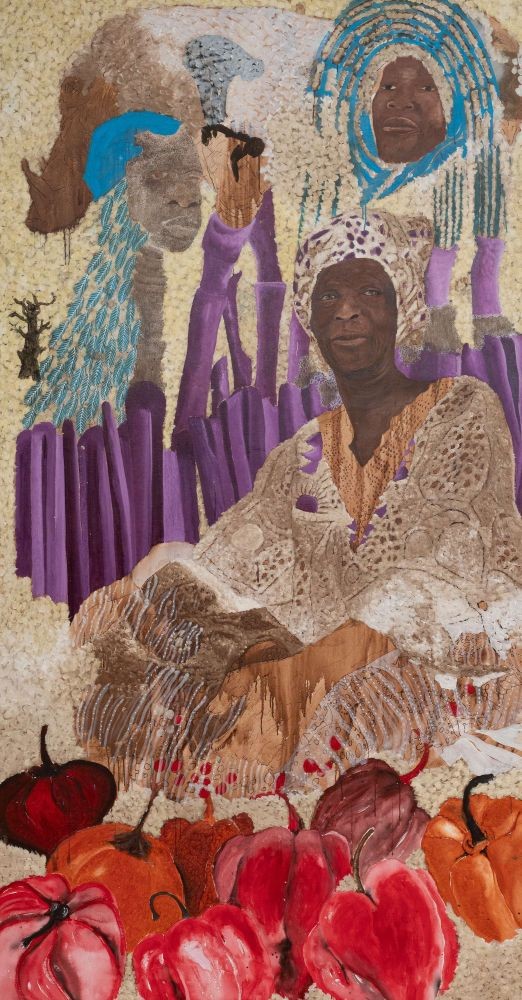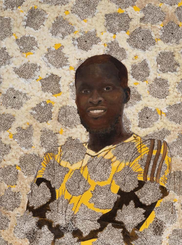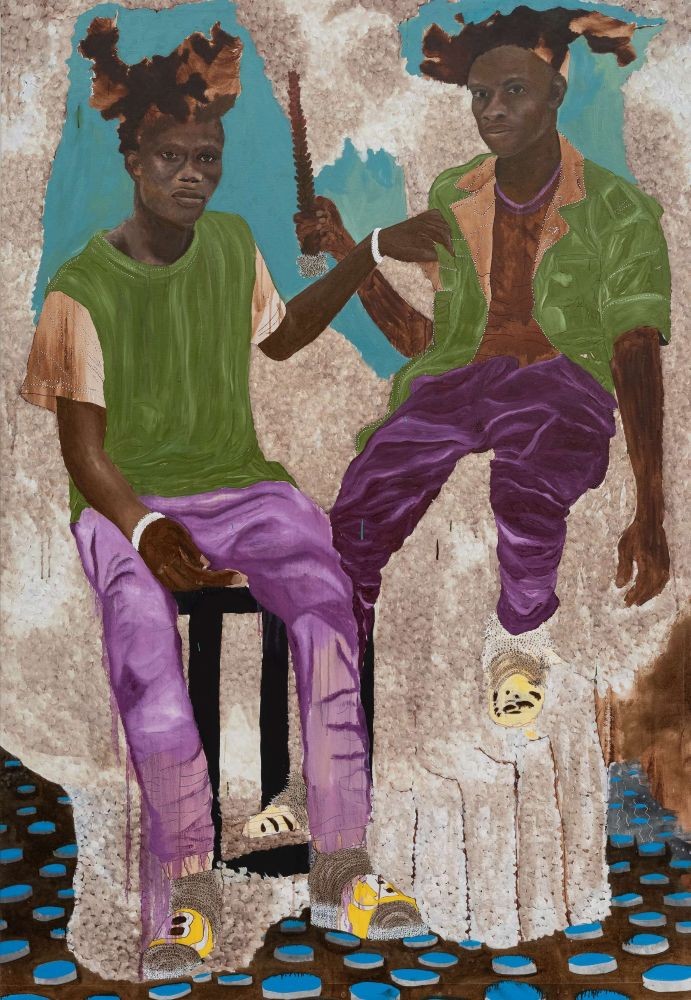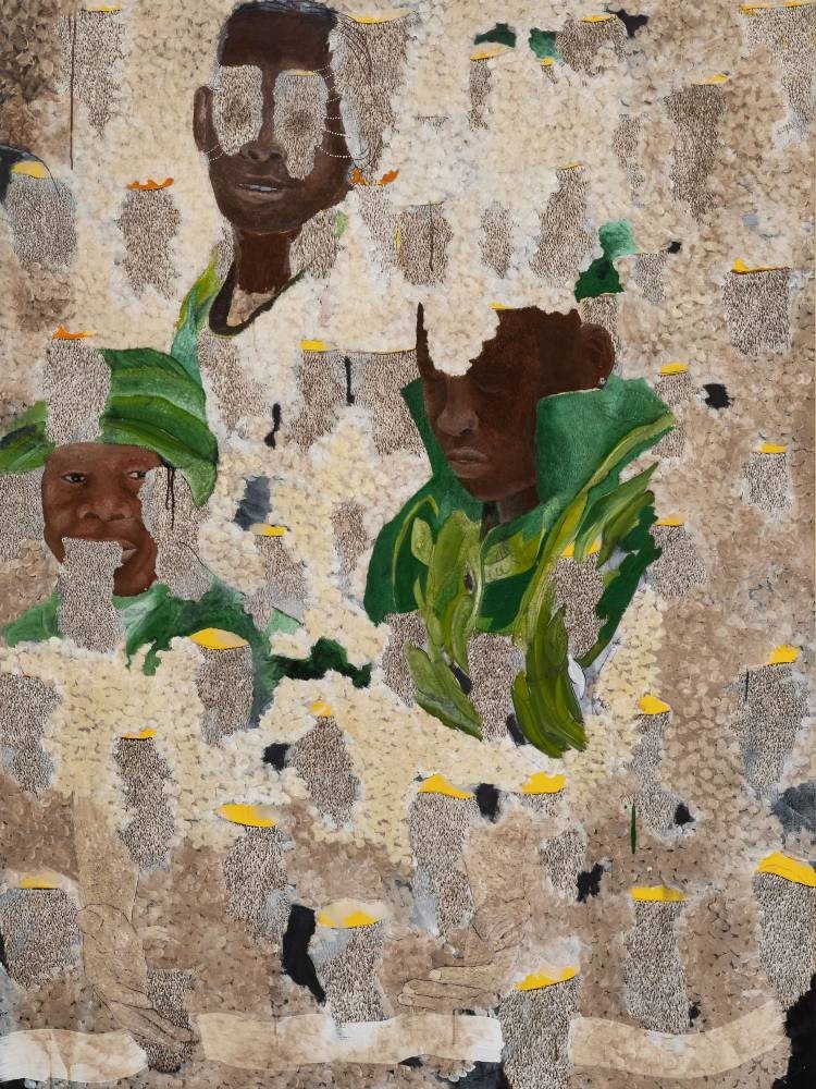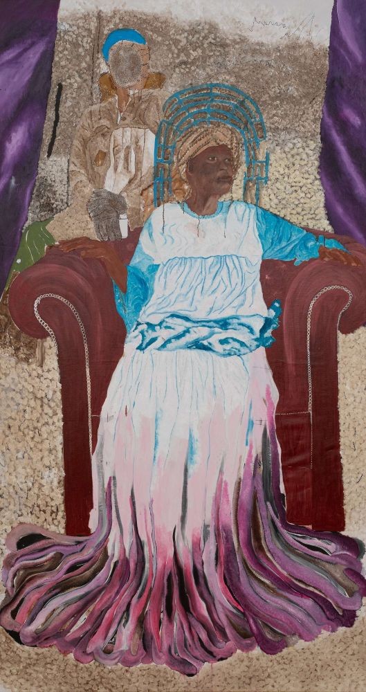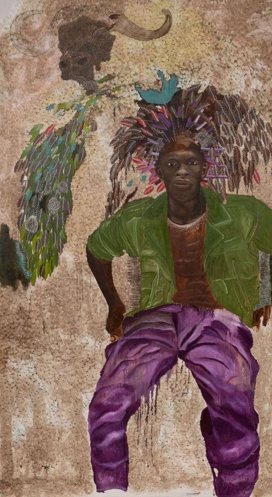 AS: Eserlerinde ata mirasından gelen semboller ile çağdaş imgeleri harmanlıyorsun. Afrika ve Avrupa, geçmiş ve şimdi arasında köprüler kuruyorsun. Peki kendini farklı medeniyetler arasında hikâyeler anlatan bir anlatıcı olarak mı görüyorsun, yoksa doğrusal tarih fikrini bozan bir kişi olarak mı?