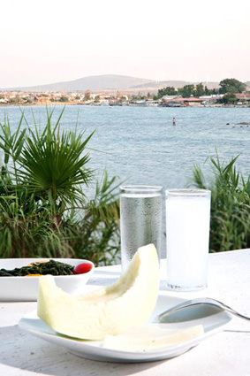 Mavinin tüm tonlarını barındıran Ege Denizi'nin taze balık çeşitlerinden "levrek marin"i misafirlerine denetmeyi mutlaka tavsiye eder... Ayrıca, tamamen Ege'ye özgü "şevketi bostan", "radika" ve "terleten" gibi mezeler, buraya özgü "soya soslu kalamar" ve "sütlü karides" gibi ara sıcakları, menüde en ilgi gören tatların başında gelir… Hiçbir yerde bulamayacağınız mevsiminde "enginarlı balık" "şevketi bostanlı balık", "ekşili balık" gibi değişik lezzetler ve "deniz mahsullü makarna" en çok tercih edilen ana yemek ve balık çeşitleri arasındadır.
