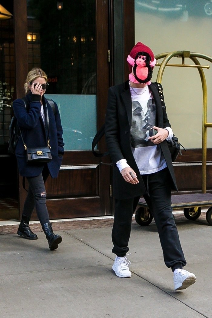 Delevingne, kız arkadaşı olduğu iddia edilen Ashley Benson'la Greenwich Hotel'den ayrılırken, yüzünü pembe bir peluş maymunla örttü. Yüzündeki maskeyi hiç çıkarmayan ünlü model, Benson'la ilişkilerine dair sorulara yanıt vermedi.