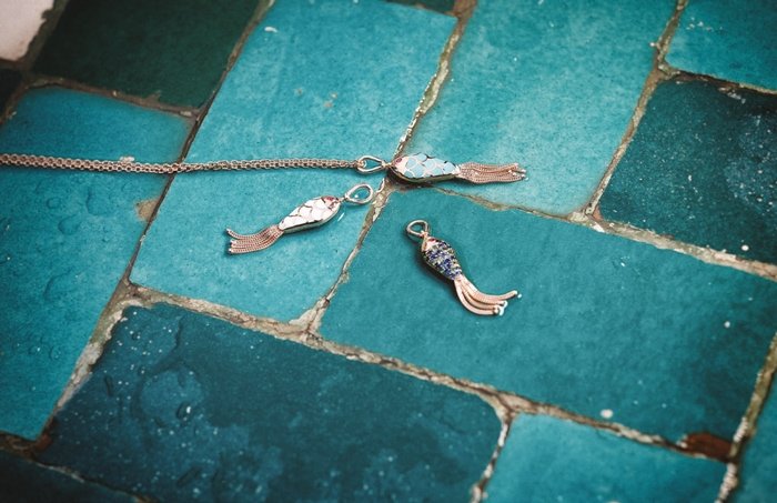 Bir balık yapmayı düşünüyordum. Bilirsiniz, balık biraz aptal bir hayvandır, ondan çok emin olamıyordum! Ancak balığın pullarını hareketli ve mineli parçalardan yapmak ilginç geldi. Teknik açıdan araştırma yapmam gereken üretim süreci çok keyifliydi. Kolay giyilebilir parçalar ortaya çıktı. Ben zaten insanlar mücevherlerimi "değerli" görsünler istemiyorum. Bu çok ağır bir kelime; "Herkes satın alamaz" demek. Ancak her pahalı olan şey güzel olacak diye bir kural yok ve demokratik olma fikri benim hoşuma gidiyor. Eğer değerli demek nadir demekse, kalpten bir kucaklama da nadir olabilir. Bence "samimi" benim mücevherlerimi en iyi tanımlayan kelime; Latince kökeninde "mühürsüz" demek, yani zarfı açık gönderilmiş bir mektup gibi.
