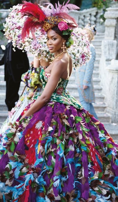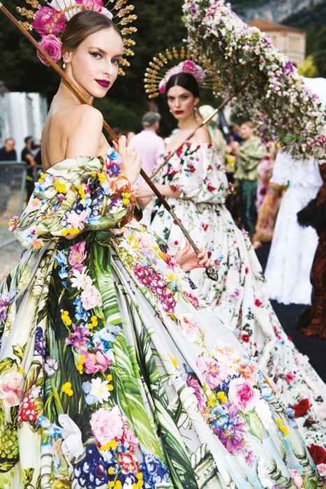 Kadın giyim defilesi, yani hafta sonunun başlıca 'aktivitesi', günbatımında, villanın mumlarla döşeli bahçesinde gerçekleşti. Güneş, dağların ardında yavaşça batarken seyirciler kadife kaplı sandalyelerine yaslandılar ve orkestra çalmaya başladı. Her Alta Moda koleksiyonu, sunumunun gerçekleştiği lokasyondan izler taşır. Bu seferki adres de, tarihinde global zenginler için bir oyun alanı görevi görmüş bir yerdi. Domenico Dolce, Como'nun çok uluslu bir bölge olduğu fikrine katılıyor ve eklemeden geçemiyor, "Farklı ülkelerden gelen aristokratların yolu Como'da kesişirdi, burası dedikodu kazanı gibiydi. Özgür bir yaşama sahiptirler ve biz de tam anlamıyla bunu yansıtmak istedik." Organizasyonda Ashley Graham ve Naomi Campbell'dan Lady Kitty Spencer ve Vikontes Emma Weymouth'a toplamda 120 model yer aldı. Her biri fantastik özelliklere sahip ve ayrıcalıklı el işçiliğiyle tasarlanan kıyafetleri dikkatle taşıdılar.