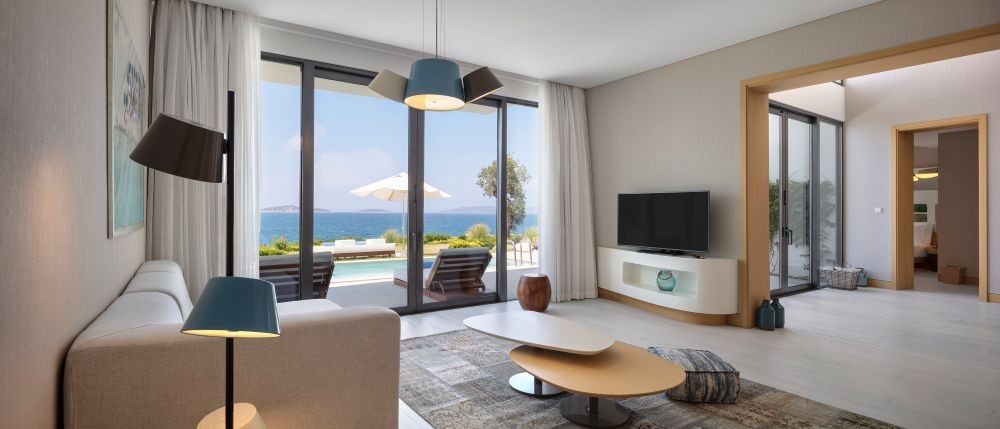 Aile odaklı yeni içerikler ise konaklama keyfini bir adım ileri taşıyor. Yaz sezonu için yeni bir deneyim sunmak üzere hizmete giren Aile Süiti, sayısı 6 kişiye kadar olan ailelere konforlu bir alan yaratmak üzere özel olarak tasarlandı. İki ayrı özel havuz, donanımlı mutfak ve altı kişilik konaklama kapasitesiyle dikkat çeken süit hem mahremiyet hem de geniş yaşam alanı arayan misafirler için ideal bir seçenek oluşturuyor. Otelin süit ve villalarında zarif detaylarla şekillenen iç mekanlar, panoramik manzara ve üstün hizmet anlayışıyla bütünleşiyor.