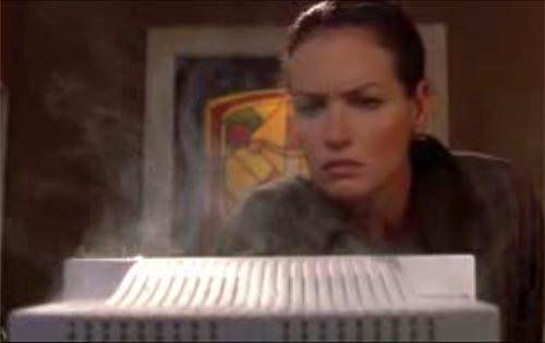 Bilgisayar ekranının patlamasıyla ölüm… (Bilgisayarının ekranından duman çıktığını fark eden Ms. Lewton, sorunu anlamak için gelir ve ekran havaya uçar. Lewton, boğazına saplanan bilgisayar parçasını çıkarmak ve kanamayı durdurmak için bulaşık bezine uzanmak ister; ancak bezle birlikte kasap bıçağı da gelir ve karnına saplanır.)