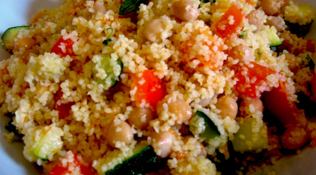 Tavuğu 8 parçaya bölünüp az yağda soğanla birlikte 5-10 dk kavurun. İçine biber salçası ve su ilave edilip 20 dk yavaş yavaş kaynatın.Parmak şeklinde doğradığınız sebzeleri ekleyip pişirmeyi tamamlayın.(Sebzeler diri kalsın).Kuzu etini tavada yağda pişirin. Bulgura 2,5 su bardağı kaynar su ekleyin. Harmanlayın ve 10dk.kapağını kapatıp dinlendirin. Üzümleri ekleyin,karıştırın.Bulguru yani Kuskusu büyük bir kaseye koyun ve geniş bir tepsiye ters çevirin. Hazirladiğiniz sebzeli tavuğu ve etleri kuskusun üzerine serin. Hep birlikte servis yapın. Afiyet olsun.