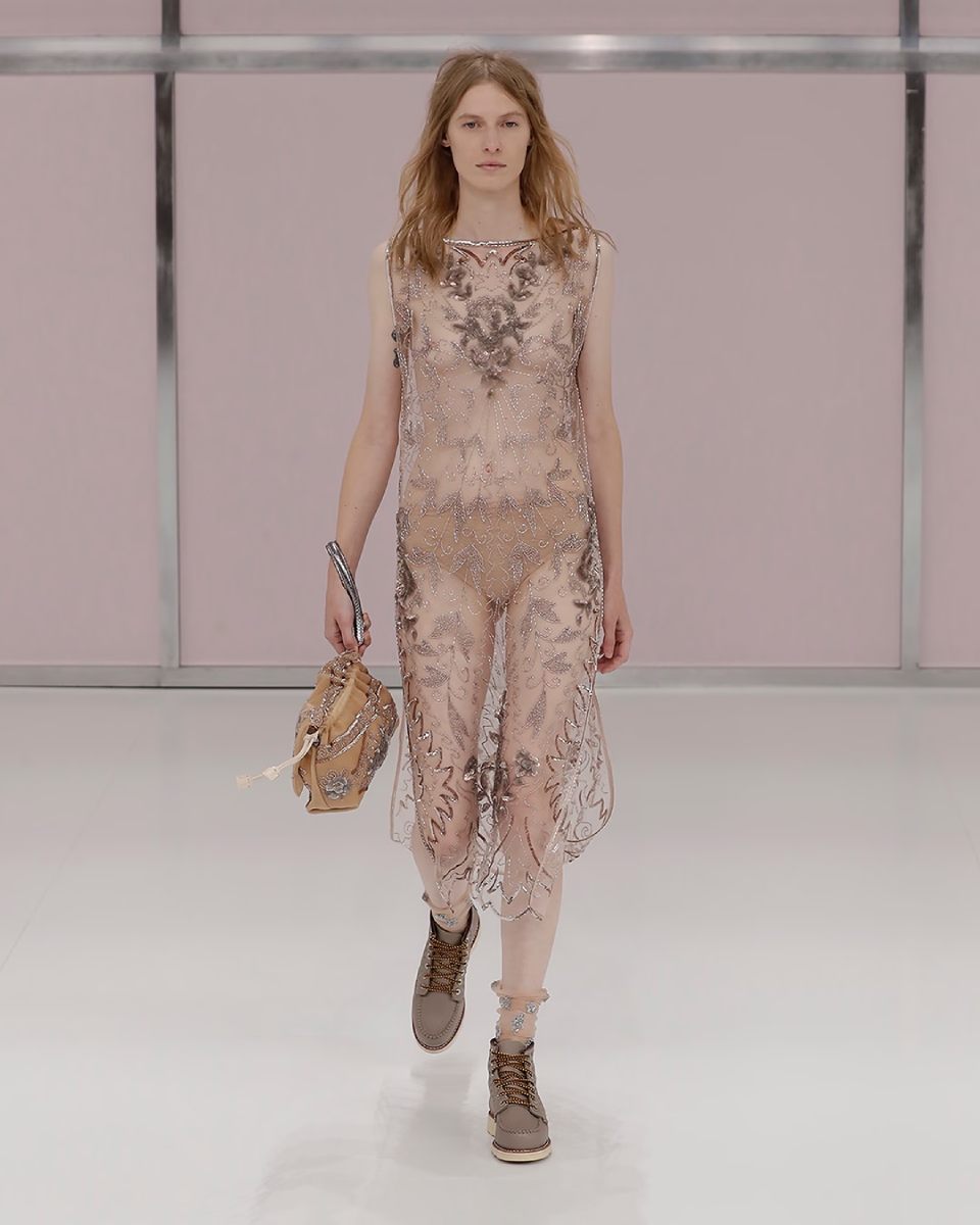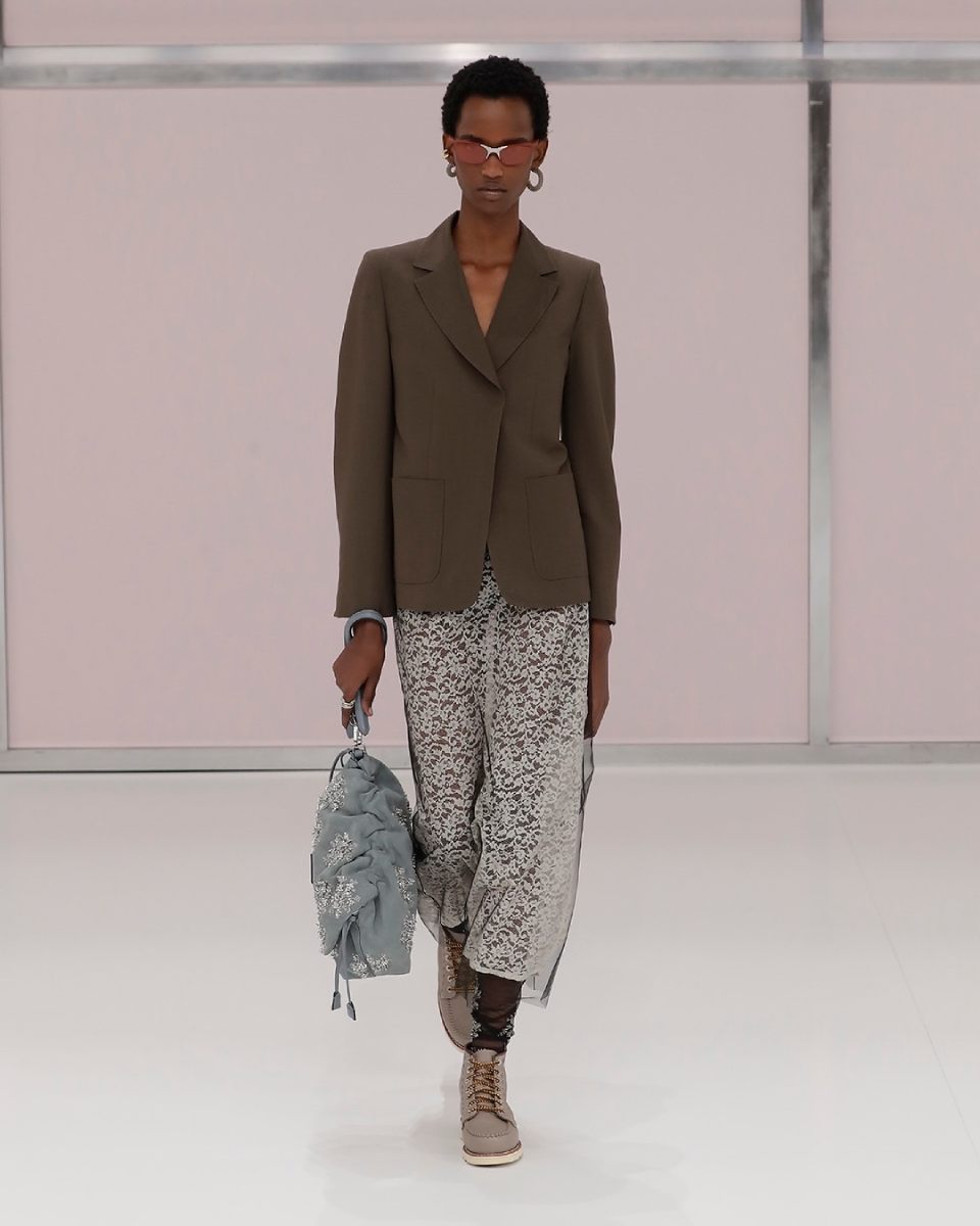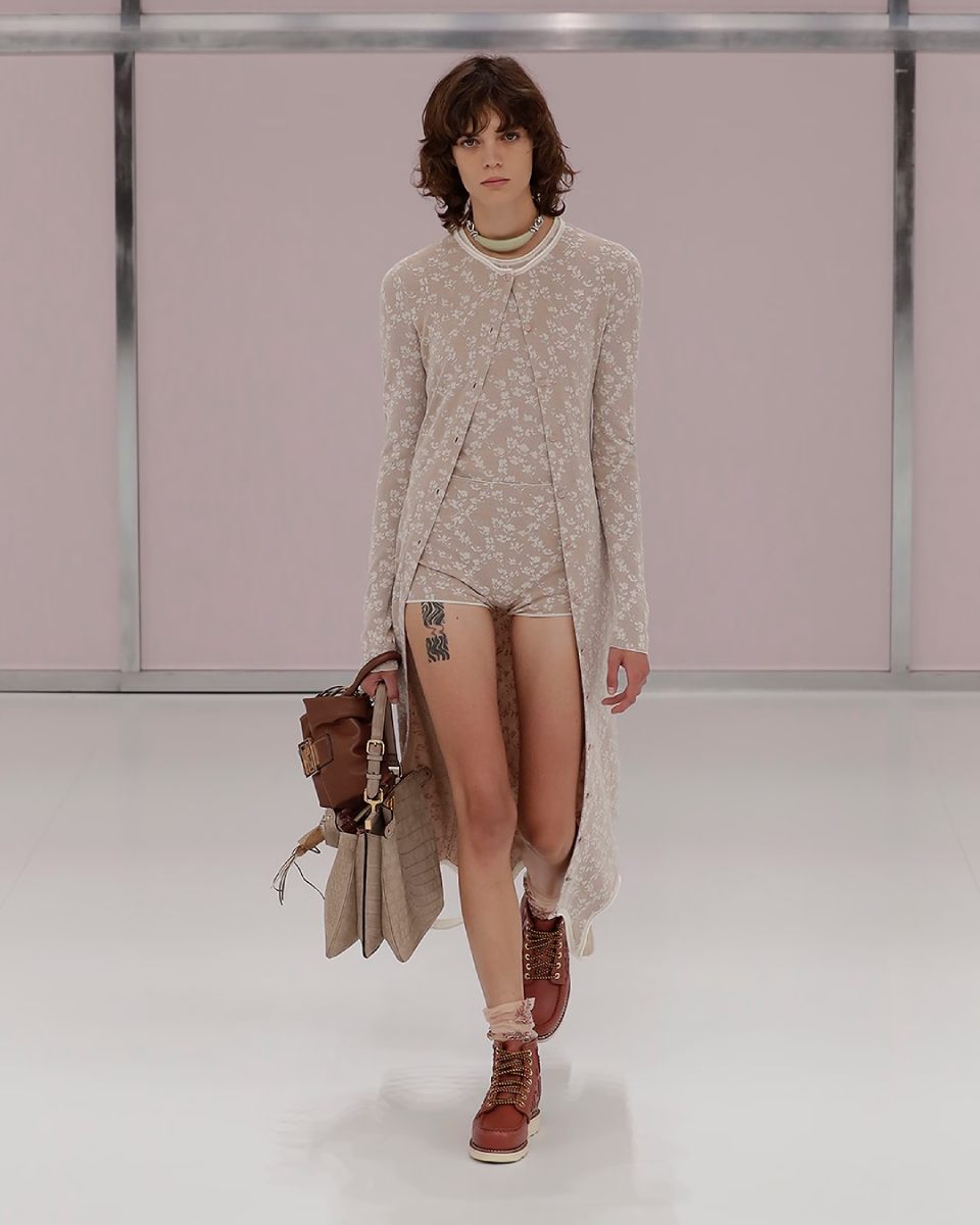 Fendi 2025 İlkbahar/Yaz koleksiyonu, markanın 100 yıllık mirasına saygı duruşu niteliğinde. Kim Jones, Fendi’nin tarihini şekillendiren dört nesil kadını onurlandırarak, 1920'lerin caz çağı modernizminden ilham alan ince işçilikli parçalar sundu. Düşük bel elbiselerden minimalize edilmiş silüetlere, Art Deco motiflerinden püsküllü etek uçları olan şeffaf flapper elbiselerine kadar geniş bir yelpaze sunan koleksiyon, klasik ve modern öğeleri bir araya getiriyor. Nötr tonlarda renk paletine sahip koleksiyon zarafetiyle öne çıkıyor.