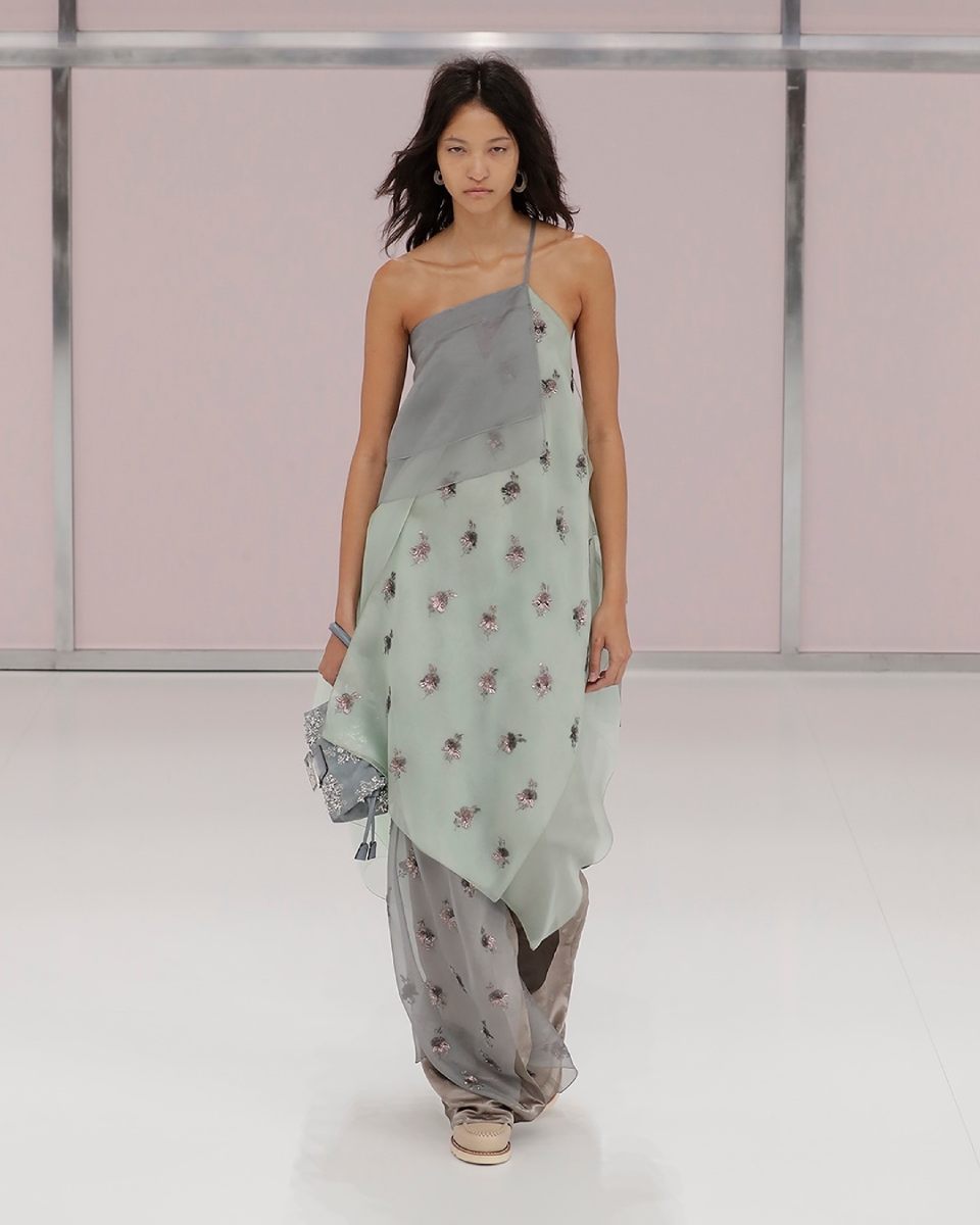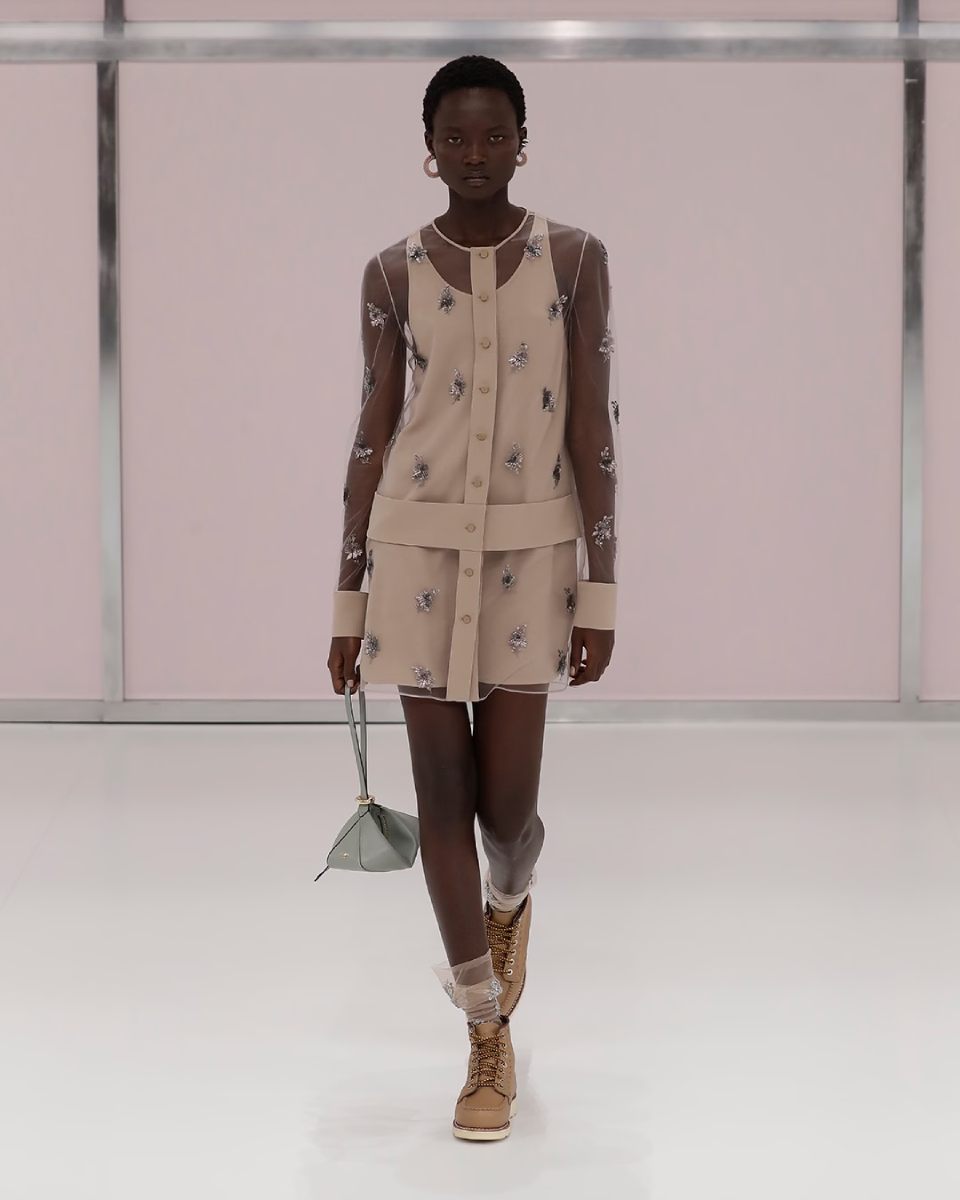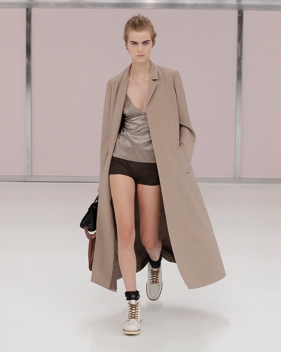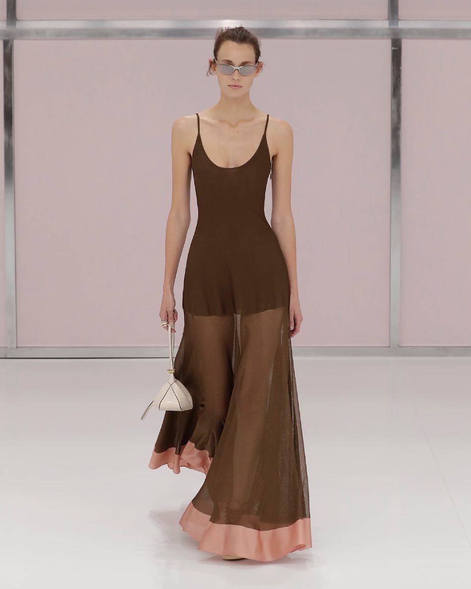 Fendi 2025 İlkbahar/Yaz koleksiyonu, markanın 100 yıllık mirasına saygı duruşu niteliğinde. Kim Jones, Fendi’nin tarihini şekillendiren dört nesil kadını onurlandırarak, 1920'lerin caz çağı modernizminden ilham alan ince işçilikli parçalar sundu. Düşük bel elbiselerden minimalize edilmiş silüetlere, Art Deco motiflerinden püsküllü etek uçları olan şeffaf flapper elbiselerine kadar geniş bir yelpaze sunan koleksiyon, klasik ve modern öğeleri bir araya getiriyor. Nötr tonlarda renk paletine sahip koleksiyon zarafetiyle öne çıkıyor.
