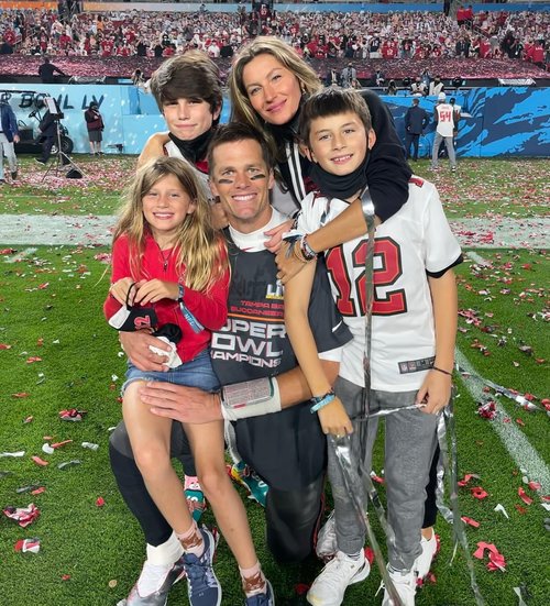Önceki akşam Tampa Bay Buccaneers ile kariyerinin 7'nci Super Bowl zaferini elde ederek kendi rekorunu kıran eşi Tom Brady'nin yanında olarak kutlamalarda yalnız bırakmayan Gisele Bündchen, final maçına çocukları Benjamin Brady (11) ve Vivian Lake Brady (8) ile birlikte katıldı.