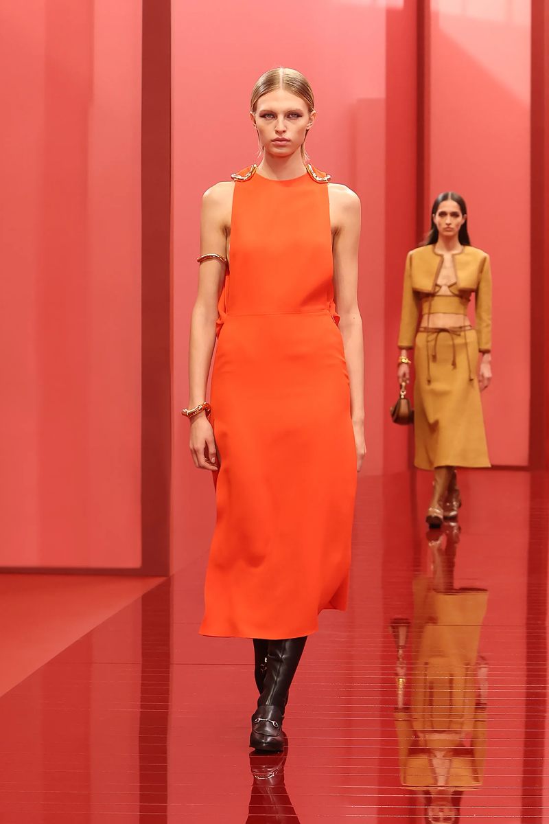 Gucci, 2025 İlkbahar/Yaz Koleksiyonu ile Sabato De Sarno'nun tasarım yolculuğunu kutluyor. Milano'da sergilenen koleksiyon, 60'ların silüetlerini çağdaş unsurlarla birleştiriyor. Deri, iç giyim detayları ve GG monogramının ince işçiliği, günlük hayatta kullanılabilir zarafet anlayışıyla sunuluyor. Özellikle Gucci Bamboo 1947 çantası hem orijinal tasarımıyla hem de yeni dokunuşlarla defilenin öne çıkan parçalarından biri oluyor. Koleksiyondaki platform ve kare burunlu ayakkabılar öne çıkarken Gucci Flora fular ise Gucci'nin mirasına saygı duruşu niteliğinde.