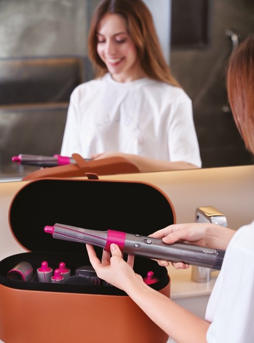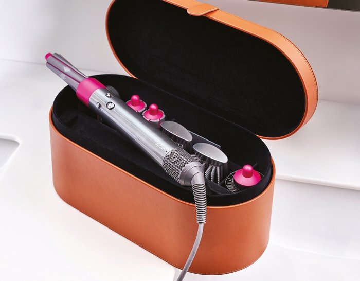 Dyson Airwrap™ saçınızdaki nemi koruyarak şekillendirmek üzere tasarlanmış. Saçınızdaki nemi güçlü hava akımı ve kontrollü ısı ile birleştirerek, aşırı ısı kullanmadan şekillendiriyor. Şekillendirme öncesi kullanılan kurutucu aparat, ıslak saçları nemli ve şekillendirmeye hazır hale getiriyor. Düzleştirme fırçaları, güçlü hava akımıyla doğal bir fön etkisi yaratarak saçları düzleştiriyor. 30 mm Airwrap™ saç maşaları hacimli bukleler ve dalgalar oluştururken, 40 mm saç maşaları büyük bukle ve dalgalar oluşturarak saçları şekillendiriyor. Dyson Airwrap™'in şekillendiricinizi ve aksesuarlarını koruyan bir çantası da var. Taba rengi deri çanta, yumuşak kumaşla kaplı ve manyetik bir tokayla sabitleniyor.