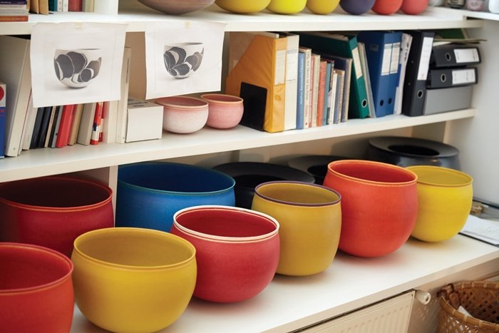 1958-1960 yıllarında Almanya'daki bir fabrikada işçi olarak çalışmıştım. İşimiz günde yüzlerce vazo falan dekorlamaktı. Yine 1963'te Kopenhag Kraliyet Fabrikaları'nın sanatçı atölyelerinde yüksek pişirimli çamurla çalışmak seramikçi hayatımın ilk önemli adımı oldu. Sadece tek parça yapıyordum, inanılmaz zengin bir tekniği vardı fabrikanın. Kısa süre sonra porselen çamuru için tasarımlar yapmam istendi. Bir yemek takımı ve birçok başka dizaynım alındı prodüksiyona. En önemlisi, görmeyi, kalitenin ne olduğunu öğrenmemi sağladı bu dönem. Büyük ustalar vardı fabrikada, çok şey öğrendim onlardan. Her birini minnetle anıyorum. Prodüksiyon için ürettiklerimle atölyemde ürettiklerim bambaşka iki dünyanın işleri. Gönlümde ağır basan elbette atölye çalışmalarım.