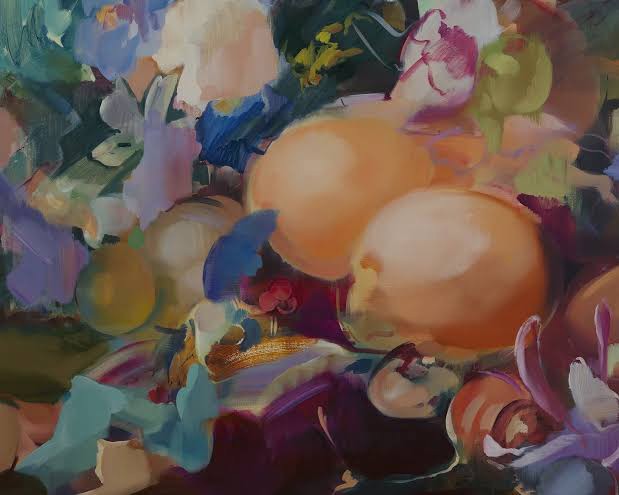 - Üslup: Yukhnovich, figuratif öğeleri soyutlaştırmayla, Rococo ve Barok estetiği ile Abstract Expressionism referanslarını karıştırıyor. Renk, fırça darbesi, çiçek motifleri, doğal formlar; figür doğrudan yok — figür yerine çiçek, yaprak, doğa öğeleri ve mevsim duygusunu çağrıştıran soyut anlatılar var.