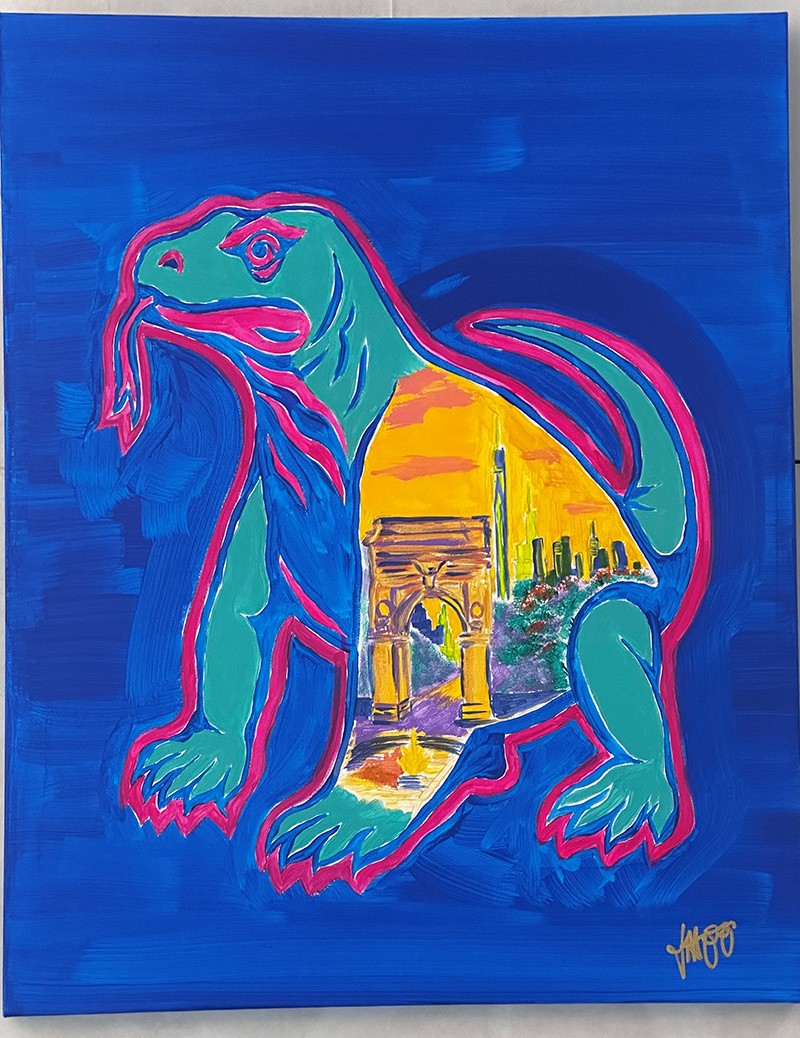 Fading Icons, iki dünyayı birleştiriyor: nesli tükenmekte olan hayvanlar ve Manhattan’ın unutulmaz simgeleri. Komodo Ejderi, Hawksbill Deniz Kaplumbağası, Benekli Baykuş ve Jaguar gibi türlerin siluetlerinde, köprüler kemik, gökdelenler kaburga ve neon geceler deri gibi şehre hayat veriyor. Hayvanlar, şehrin kendisi gibi elektrikli, vahşi ve canlı bir ritimle nefes alıyor.