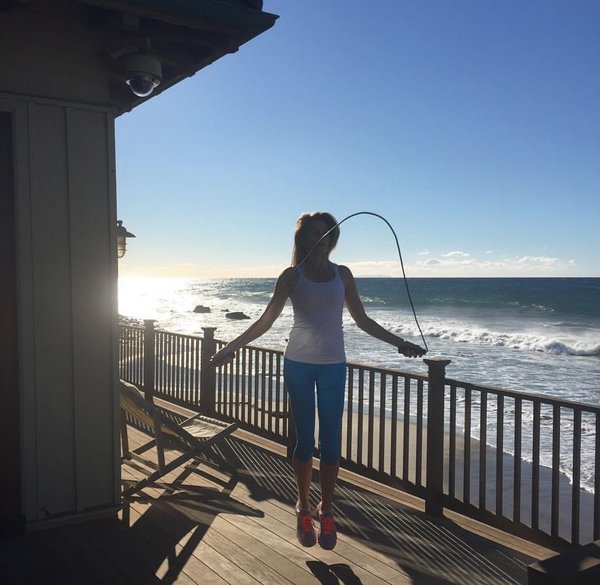 Ağırlık ve squat: "Benim için en ideal program haftada üç defa antrenörüm Sarah Hagaman ile beraber çalışmak." Açık havada: "Evime beş dakika uzaklıkta hiking yapabileceğim alanlara giderim veya eşimle birlikte bisiklete binerim."