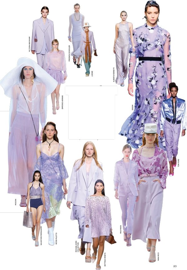 Tasarımcılar, önceki sezonun koyu tonlarının tam tersine, pastellere odaklanmış görünüyorlar. Birçoğunun kullandığı lavanta tonları, bazı look'larda akışkan tül kumaşlar, metalik deriler ve triko dokularla kendini gösterirken, kimi zaman da baştan aşağıya tek bir ton olarak karşımıza çıkıyor. Kısaca, bu yaz sokaklar lavanta bahçesine dönmeye hazır.