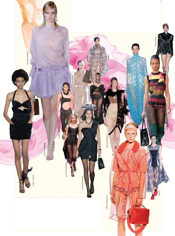İlkbahar/Yaz 2018 sezonunun olmazsa olmazı şeffaf elbiseler ve alışılmışın dışında dekolte detayları. Örneğin Sonia Rykiel'in ceket elbisesinde bacak dekoltesi ön plana çıkarken, Alexander Wang'in tek omuz detayı dikkat çekiyor. Vücudu öne çıkarmak isteyen tasarımcılar, abartısız ama lüks görünümlü dokular yardımıyla şehirde bu yaz romantizm rüzgarları estirecekler.