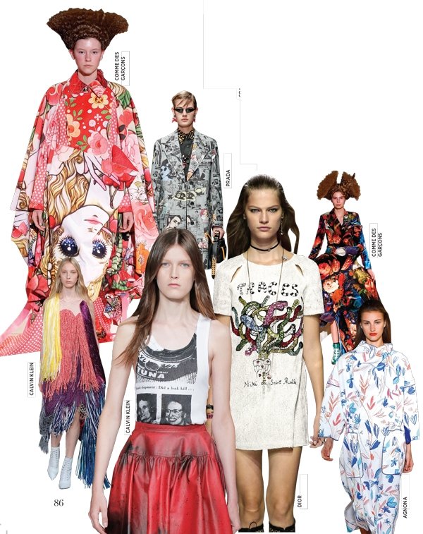 Renkli baskılı kıyafetleri seven moda takipçilerinin favori tasarımcısı Jeremy Scott'ın popüler hale getirdiği ve Pop-art baskılı Moschino elbiselerin başlattığı furyaya, çizgi roman ve çizgi film karakterlerini, popüler kültüre ait yiyecek görsellerini kullanan diğer tasarımcılar da dahil oldu. Bu bahar, Pop-art'ın tipik imajlarını Prada, Versace, Calvin Klein gibi markaların koleksiyonlarında sıkça göreceğiz.