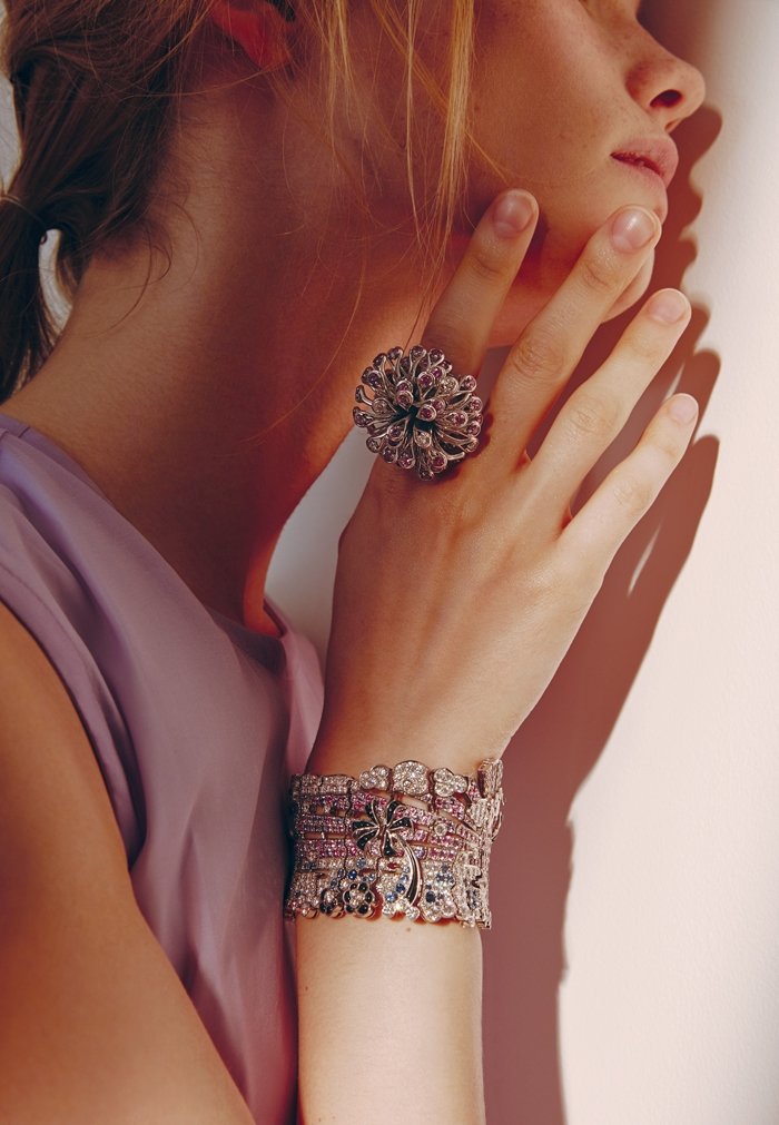 Safirden kamelyalar, pırlanta palmiyeler, narin ipek ve ketenler... Doğadan ilham alan mücevherler doğal dokularla buluşuyor