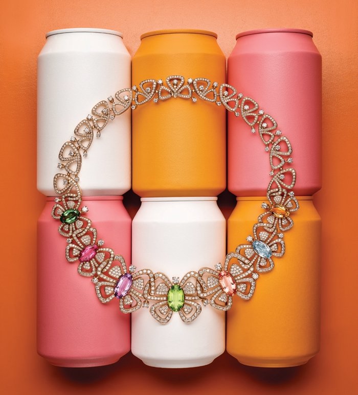 Akdeniz'in bahçelerinden de, Yunan mitolojisinden de ilham alsa, Bulgari aynı anda zamanın ruhunda ve ötesinde tasarımlar ortaya koyma gücünde. Wild Pop bunun son örneği. Markanın tarihi boyunca renkli taşları yüceltmiş olması ve 80'lerin neona varan canlı paleti, koleksiyonunun kimliğine temel oluşturmuş. 30 adet yeşil malahitin yerleştiği Serpenti My Handcuff Watch kol saati, pembe altının parladığı Flamingos kolye veya turkuaz ile mercanın pırlantalarla yan yana geldiği Roaring 80's kolye, koleksiyondaki renk skalasının genişliğini en iyi yansıtan parçalardan. Warhol'ün Campbell's konserve çorba veya Coca Cola şişesi gibi alelade objeleri sanatına taşıyışındaki Pop Art çizgi ise bir DJ setindeki plağın Music, tuşların ise Synthesizer tasarımlarında oniksle yorumlanışı veya akumarin, rubelit ve peridotların rengarenk minyatür mikrofonlara dizildiği Mics adlı parçada dışa vurulmuş. Böylesi nüktedan ve ters köşe bir tavırla klasik mücevher algısına meydan okuyan Wild Pop, High Jewellery geleneğine cila çeken bir koleksiyon olmuş.