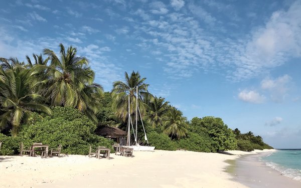 Adaya ilk geldiğinizde size üzerinde 'no news no shoes' yazan bir torba veriliyor. Adadan ayrılacağınız süreye kadar çıplak ayakla dolaşıyorsunuz. Villalar havuzlu ya da havuzsuz olarak ayrılıyor ve hepsi okyanusa beş saniye uzaklıkta konumlanıyor. Otelin özellikle en sevdiğim kısmı banyo ve tuvaletin dışarıda bulunmasıydı zira yıldızları seyrederek duş almak kadar güzel bir şey yok...