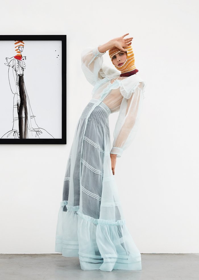 Elbise, etek, botlar ve başlık Calvin Klein 205W39NYC