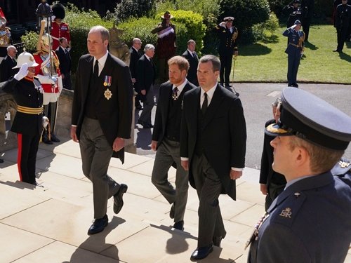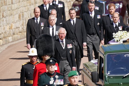 Elizabeth ve Philip'in 4 çocuğu ve 5 torunundan oluşan kortejde Prens William ve Prens Harry de vardı. İki kardeş, Prens Harry ve Meghan Markle'ın Oprah Winfrey'e verdikleri tartışma yaratan röportajının ardından ilk kez halk önünde bir araya geldi. Bu görüntüler anneleri Prenses Diana'nın 1997'de cenazesini akıllara getirdi.