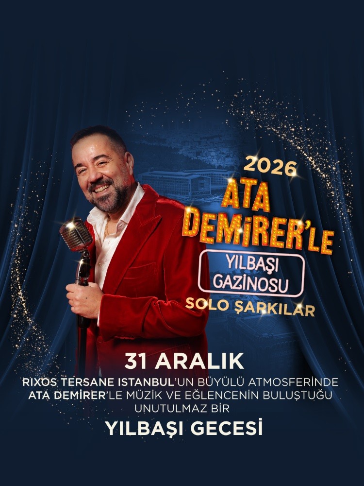 Yılbaşı gecesinin öne çıkan duraklarından biri, Ata Demirer’in Rixos Tersane Istanbul balo salonundaki özel programı. Kariyerini sahne, müzik ve gazino geleneği üzerine inşa eden Demirer, ilk kez yemekli bir yılbaşı programıyla izleyici karşısına çıkıyor. Canlı orkestra eşliğinde ilerleyen performans; hikâyeler, şarkılar ve taklitlerle klasik İstanbul gazino gecelerinin ruhunu bugüne taşıyor.