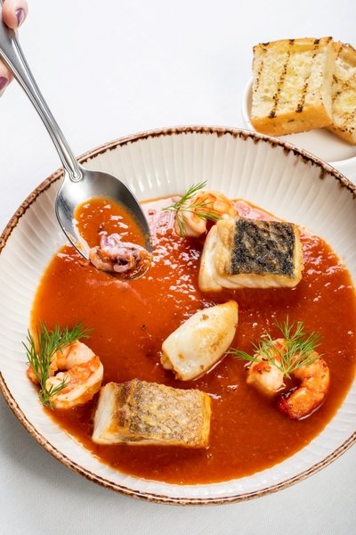 Kabak püresi ile servis edilen ıspanaklı ahtapot, sarımsaklı bruschetta ile servis edilen balık çorbası ve trüf mantarlı pappardelle. Ispanaklı ahtapotu kabak püresi ile servis ediyoruz. Trüf mantarlı pappardelle'nin sırrı ise içindeki mercanköşk. Balık çorbası, sarımsaklı bruschetta ile bir lezzet yolculuğuna davet ediyor.