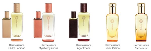 Parfüm dünyasının asil elementlerinin eşsiz ve şaşırtıcı bileşimiyle oluşturulan koleksiyonda; misk, mür, agar odunu ve sedir gibi ender malzemeler çağdaş notalarla buluşarak 'eseri' tamamlıyor. Diğer yandan, İpek Yolu'nun hatırası ve ölümsüz diyarlar da Hermessence ile yeniden doğuyor. Eau de Toilette serisindeki üçlüden ilki Myrrhe Églantine, kızıl reçinenin yaban gülü ile harmanlanmasıyla ilk görüşte aşka atıfta bulunuyor. Parfümdeki mür, baharatlı ve gizemli kuşburnu ile karışıyor. Serinin ikincisi Agar Ébène'in sıcak ve odunsu yumuşak notaları, eski bir bavulun açılmasıyla, içinden agar odunu aroması yayılması şeklinde tasvir ediliyor. Son üye olan Cèdre Sambac, sedir ağacı ile yasemini buluşturuyor. Malzemelerin geçmişine yaptığı yolculuk esnasında parfümör Christine Nagel, en kıymetli dışavurumlardan birini, en saf miske ait ender bulunan bir formu keşfetmiş. Tek başına uygulayabileceğiniz ya da bir Hermessence parfüm ile kokusunu yoğunlaştırabileceğiniz veya kişiselleştirebileceğiniz iki saf parfüm yağı, Essence de Parfum serisinde sunuluyor. Cardamusc'da, dünyanın en eski baharatlarından biri olan kakulenin ışıltılı etkisi altında, miske ait kuşatıcı hayvansal notalar iç içe geçiyor. Musc Pallida'da ise misk, süseni yükselterek ona yumuşaklık kazandırıyor.