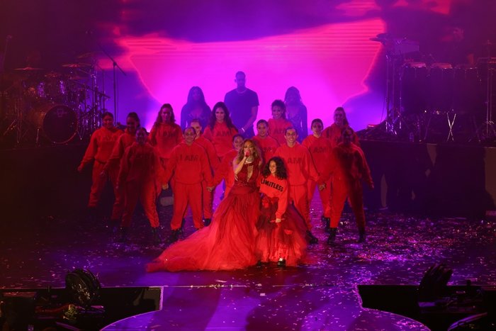 Dansları ve sahne kostümleriyle dikkati çeken Lopez, kızı Emme Anthony ile bir şarkısına düet yaparak hayranlarına sürpriz yaptı. Anne kızın düeti uzun süre alkışlandı.
