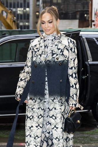 Jennifer Lopez'in Marry Me basın turu tüm hızıyla devam ediyor ve oyuncu gününe New York'ta iki basın durağı yaparak, iki farklı görünümle başladı. "Marry Me" filminin yıldızı, Amerikalı şarkıcı, oyuncu ve ikon Jennifer Lopez, "The Today Show"a Fendi Kış Kapsülü Koleksiyonu'ndan mermer baskı kaban, elbise ve Peekaboo çantası ile katıldı.