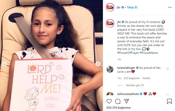 Jennifer Lopez de kızının kitabını sosyal medya hesabında tanıttı. Lopez, "Emme ile gurur duyuyorum. Emme ilk kitabında kendi dualarını paylaşıyor. Bu kitap ailelere inancın huzur ve gücünü kucaklamak için bir yol sunacak" ifadesini kullandı.