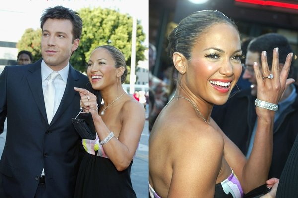 2002 yılının Kasım ayında, Affleck yıldıza Harry Winston'dan 2,5 milyon dolara mal olduğu tahmin edilen 6.1 karatlık pembe bir elmasla evlenme teklif etti. Lopez, 2004'te nişanı sona erdirdiklerinde yüzüğü geri vermesine rağmen, 2020'de Apple Music sunucusu Zane Lowe ile yaptığı röportajda "takmayı ne kadar çok sevdiğini" hatırladı. Ayrıca, bir Oscar partisinde Barbra Streisand ile tanıştığında, efsanenin yüzükten etkilendiğini söylediğini de ifade etti.