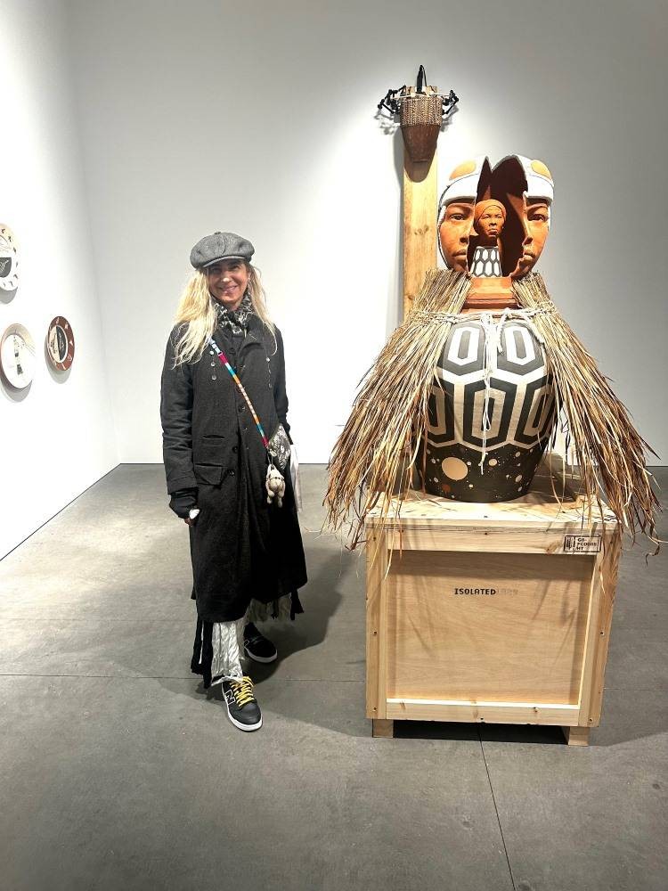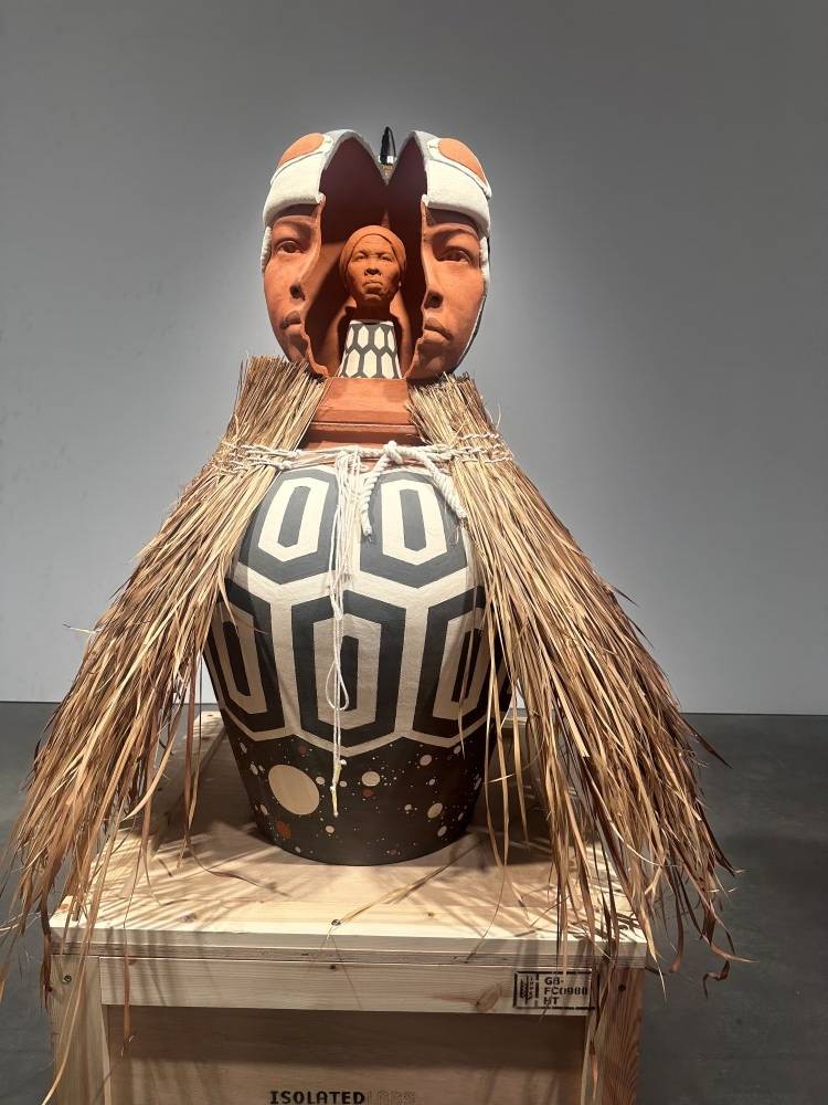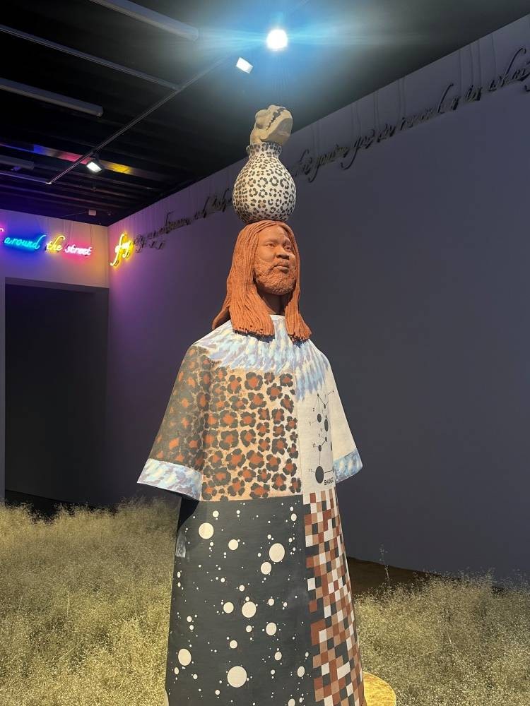 Tavares Strachan: O figür benim kahramanlarımdan biri olan Tony McKay’e bir gönderme. O bir müzisyen, ressam ve mistikti. Onun müziği aracılığıyla Afrika kökenli tanrı Shango’yu tanıdım. Karayipler’de Afrika dinleri uzun süre yasaklandı ama müzik bu bilgiyi gizlice taşımaya devam etti. Ben de çocukken Shango’yu müzik aracılığıyla öğrendim.