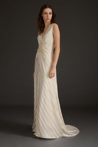 Her gelin için bir şeyler yaratmak amacıyla dört gelinliği hepsi birbirinden oldukça farklı; dantelli bir orta boy elbiseden, daracık bir saten elbiseye, puantiyeli ve fiyonklu tasarımdan daha geleneksel bir etkinlik için harika olacak yüksek boyunlu, yakalı bir elbiseye kadar her şeyi içeriyor.