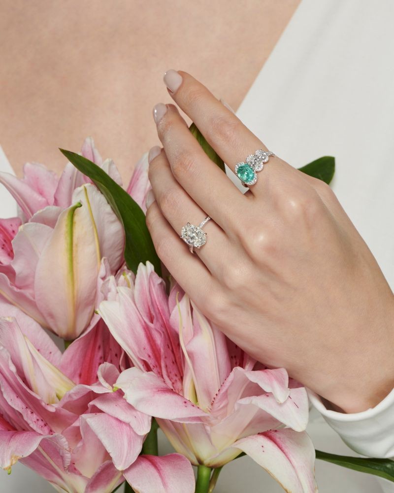Damla kesim kaboşon turmalin “Paraiba” ve pırlantalardan oluşan küpeler radyant renkleri ve armonisiyle adeta büyülüyor. Taşların damla kesiminin uçlarını dantel gibi süsleyen pırlantaların zarafeti ve şiirsel simetri ve asimetri dokunuşları, “Classics with a Twist” ruhunun birer temsilcisi… Geçmiş ile geleceğin füzyonu olan “Classic with a Twist” kavramı aynı zamanda Adler’in köklerine dayanan, oryantal cömertlik ile batı modernizminin bir sembolü.