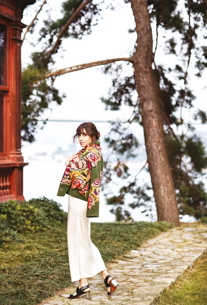 Modaya sanata duyduğum kadar büyük bir ilgi duymuyorum aslında; alıştığım belli başlı markalar dışına çok çıkmam. Stil konusunda annem Bike Gürsel'den ilham aldığımı söyleyebilirim; çocukken onun 'garip' bulduğum Issey Miyake, Comme des Garçons gibi markalardan oluşan gardırobundan kıyafetleri bugün ben giyiyorum. Fotoğraf çekiminde üzerimde gördüğünüz Romeo Gigli tasarımları annemin eski elbiselerinden örneğin. Genelde net çizgileri olan, sade ve hatta biraz maskülen diyebileceğim bir stilim var; makosenler ve ceketler her zaman dolabımda büyük yer tuttular. Desenlerle ve değişik dokularla oynamayı, kıyafeti bu şekilde farklılaştırmayı seviyorum. Yeniyi ve eskiyi birlikte kullanmak da çok hoşuma gidiyor; minimal çizgideki bir elbise üzerine antika broş takmak gibi.