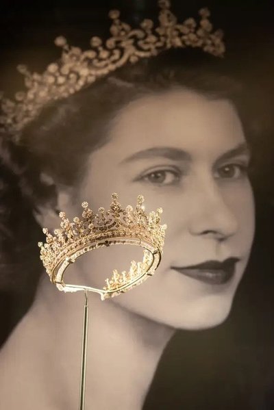 1952'den kalma ikonik portreler ve mücevherler, Kraliçe'nin Gümüş, Altın, Pırlanta ve Platin Jübilelerini kutlamak için görevlendirilen resmi fotoğraflarının yanı sıra Prenses Elizabeth'in ebeveynleri Kral George VI ve Kraliçe Elizabeth'in 1937'deki taç giyme töreninde giydiği krem ve altın süslemeli taç giyme elbisesi ile birlikte sergileniyor.