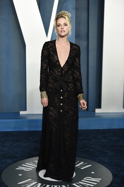 Prenses Diana biyografik filmi Spencer'daki rolüyle En İyi Kadın Oyuncu kategorisinde aday gösterilen Stewart, özel yapım siyah saten ceket ve uyumlu şort, beyaz şifon gömlek ve siyah topuklu ayakkabılarından oluşan tam bir Chanel görünümüyle kırmızı halıda yürüdü.