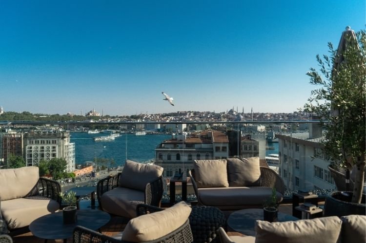 The Bank Hotel İstanbul'un teras katında yer alan The Bank Roof Bar, misafirlerine lüks ve unutulmaz bir deneyim sunmakta. Karaköy'ün üzerinde süzülen şık ve ferah roof bar, Haliç, Boğaziçi, Ayasofya, Topkapı Sarayı ve Sultanahmet Camii dahil olmak üzere İstanbul'un muhteşem manzaralarıyla çevrilmektedir.