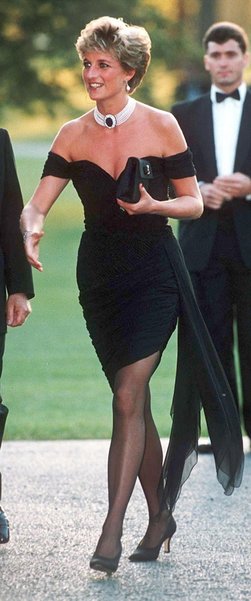 Netflix'in The Crown dizisinin 5. sezonunda Halkın Prensesi'ni canlandıran Elizabeth Debicki, ikonikleşen 'intikam elbisesi' içerisinde görüldü. Debicki, Yunan tasarımcı Christina Stambolian'ın halk arasında "intikam elbisesi" olarak bilinen küçük siyah elbisesinin yeniden yaratılmış halini giyiyor.