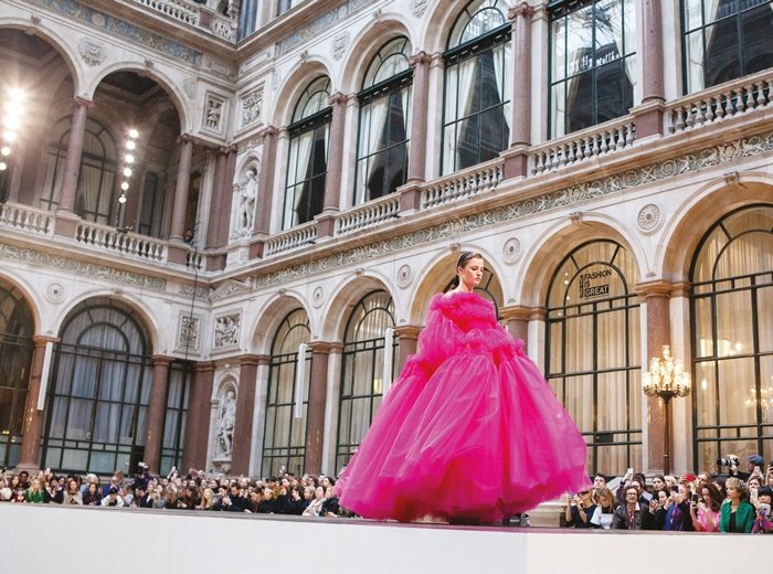 İddialı elbiselerin efendisi Goddard, 2019-20 Sonbahar/Kış koleksiyonunda çıtayı daha da yükseltiyor ve daha hacimli, daha dikkat çekici siluetlere imza atıyor: örneğin, 100 metre neon pembe tülden hazırlanan elbise bu iddialı tasarımlardan yalnızca biri.