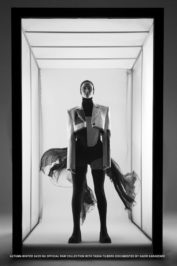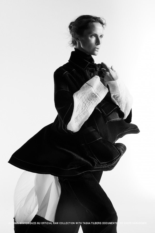Ayrışan kampanyalara imza atan tutkulu yaratıcı moda evi NU, Kanadalı model Tasha Tilberg'in başrolde olduğu, Kadir Karademir'in belgelediği AW24 kampanya koleksiyonunun bir parçası olan NU Black "RAW" koleksiyonunu 4. kez katıldığı Londra Moda Haftası kapsamında sundu.