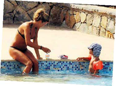 Düzgün fiziği ile göz dolduran Sert, gün boyu oğlu ile çocuk havuzundaydı