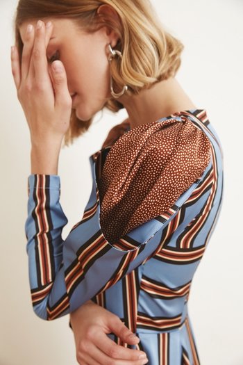 İlk bakışta fiyonk ve drapeler, çiçek desenleri, geometrik çizgi gibi detaylar içeren, sonbahar renklerinin hakimiyetinde bir koleksiyon görüyoruz. Daha alt katmanlara indiğimizde neler karşımıza çıkıyor?