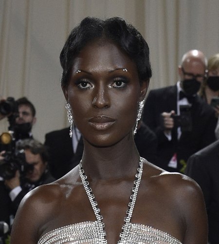 Jodie Turner-Smith, parmak dalgaları ve ince kaşlarıyla benzer bir eski Hollywood estetiğini yansıtıyordu, kaşlar üçlü kristalle süslenmişti.